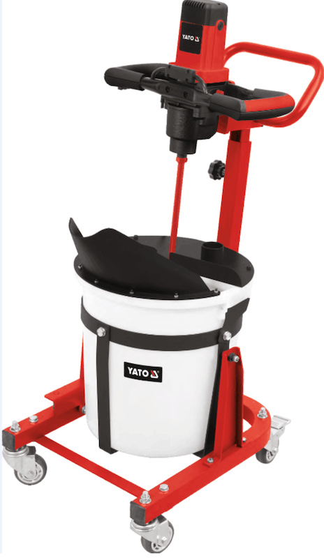 Змішувальна станці YATO YT-82605 Характеристики: потужний міксер на 1600 Вт електронне регулювання швидкості: 150-300 об/хв (1 передача), 300-650 об/хв (2 передача) функція плавного старту захист від перегріву Відро 50 літрів з великим отвором ретельне перемішування - без грудок, сухих залишків і з достатньою аерацією 4 поворотні коліщатка для зручного транспортування та 2 гальма для стабільності зручні ручки для транспортування та нахилу відра Фітинг з різьбою М14 вага: 26,3 кг Портативна змішувальна станція з живленням від мережі для самовирівнювальних розчинів, вирівнювальних сумішей та епоксидних смол. Вона забезпечує рівномірне, ефективне змішування та точне та контрольоване розливання готових мас завдяки конструкції ковша, що легко нахиляється. Дозволяючи дозувати певну кількість суміші, вона ідеально підходить для локального доливання розчину для досягнення ідеально рівної основи. Пиловідсмоктувач, підключений до пилососа, захищає від розбризкування суміші під час роботи та зменшує кількість пилу, що випливає за межі бака.